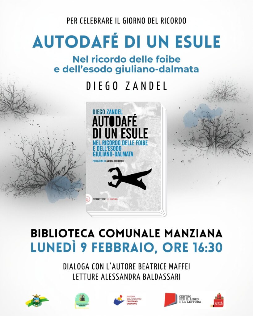 09 Febbraio 2026, ore 16:30 - Firenze Biblioteca Comunale Manziana Diego Zandel Autodafé di un esuleNel ricordo delle foibe e dell'esodo giuliano-dalmata FacebookPinterestTwitterLinkedIn