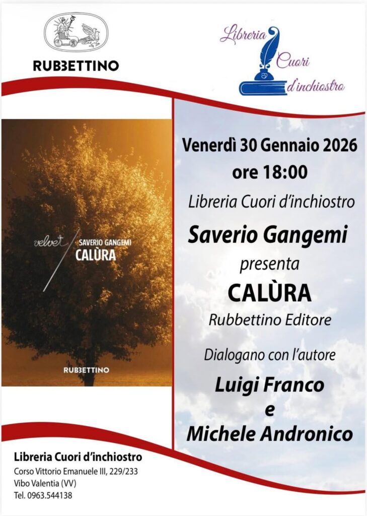 30 Gennaio 2026, ore 18:00 - Vibo Valentia Libreria Cuori d'inchiostro Saverio Gangemi Calùra FacebookPinterestTwitterLinkedIn