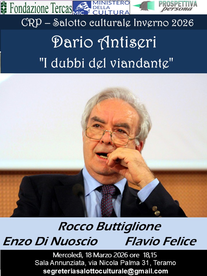 18 Marzo 2026, ore 18:15 - Teramo Sala Annunziata Dario Antiseri I dubbi del viandante FacebookPinterestTwitterLinkedIn