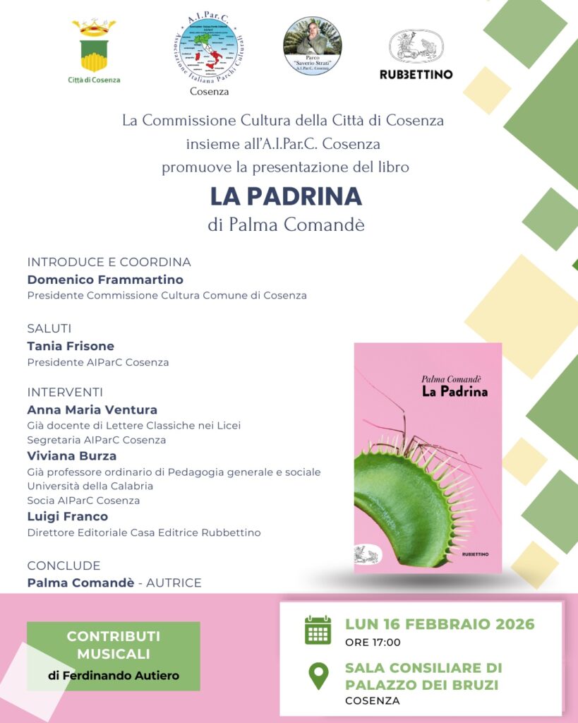 16 Febbraio 2026, ore 17:00 - Cosenza Sala Consiliare di Palazzo dei Bruzi Palma Comandè La Padrina FacebookPinterestTwitterLinkedIn
