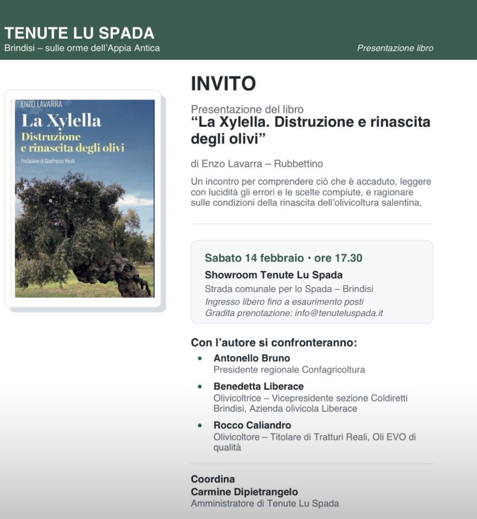 14 Febbraio 2026, ore 17:00 - Brindisi Showroom Tenute Lu Spada Enzo Lavarra La XylellaDistruzione e rinascita degli olivi Screenshot FacebookPinterestTwitterLinkedIn