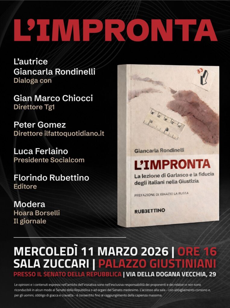 11 Marzo 2026, ore 16:00 - Roma Senato della Repubblica, Via della Dogana Vecchia, 29 Giancarla Rondinelli L’improntaLa lezione di Garlasco e la fiducia degli italiani nella Giustizia FacebookPinterestTwitterLinkedIn