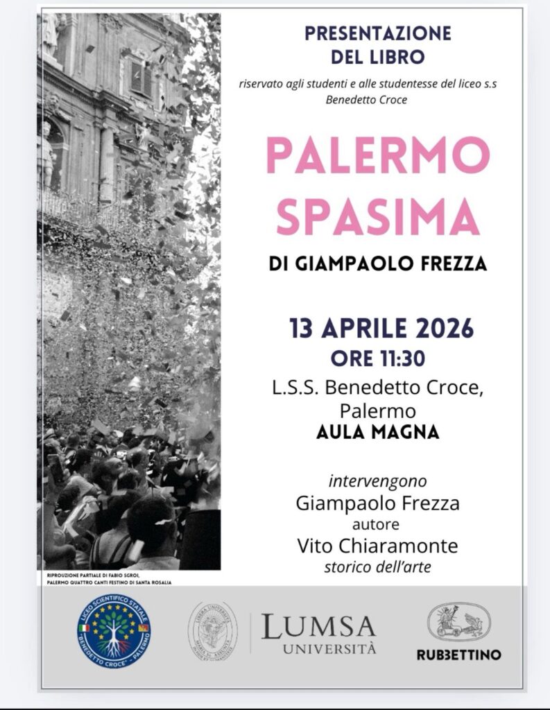 13 Aprile 2026, ore 11:30 - Palermo Aula Magna, L.S.S. Benedetto Croce Giampaolo Frezza Palermo spasima FacebookPinterestTwitterLinkedIn