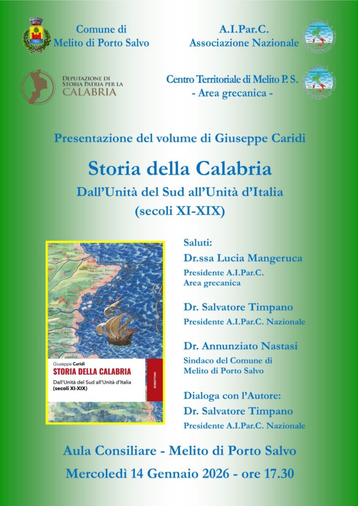 14 Gennaio 2026, ore 17:30 - Melito di Porto Salvo Aula Consiliare Giuseppe Caridi Storia della CalabriaDall'Unità del Sud all'Unità d'Italia FacebookPinterestTwitterLinkedIn
