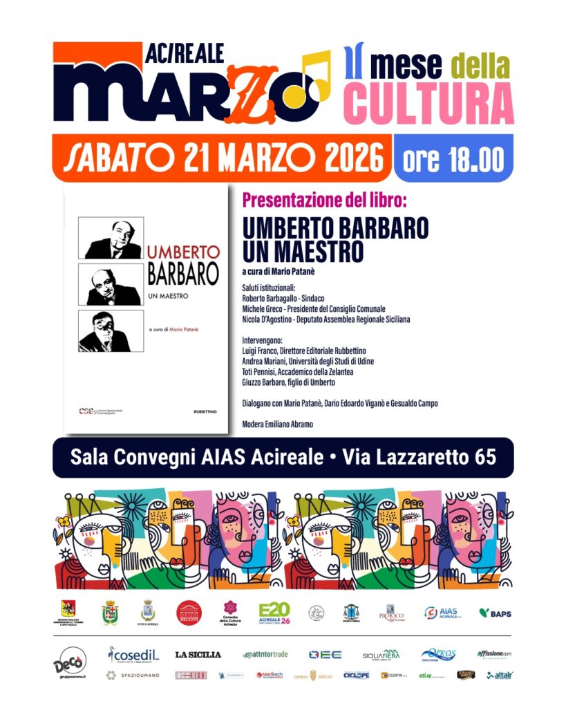 21 Marzo 2026, ore 16:00 - Acireale Sala Convegni AIAS AA.VV. Umberto BarbaroUn maestroa cura di Mario Patanè FacebookPinterestTwitterLinkedIn